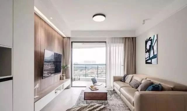 客廳低飽和度的白色、木色、奶咖色組合在一起素雅又高級。簡潔輕松的裝修,營造出舒緩的居家氛圍,適合快節奏的生活方式。