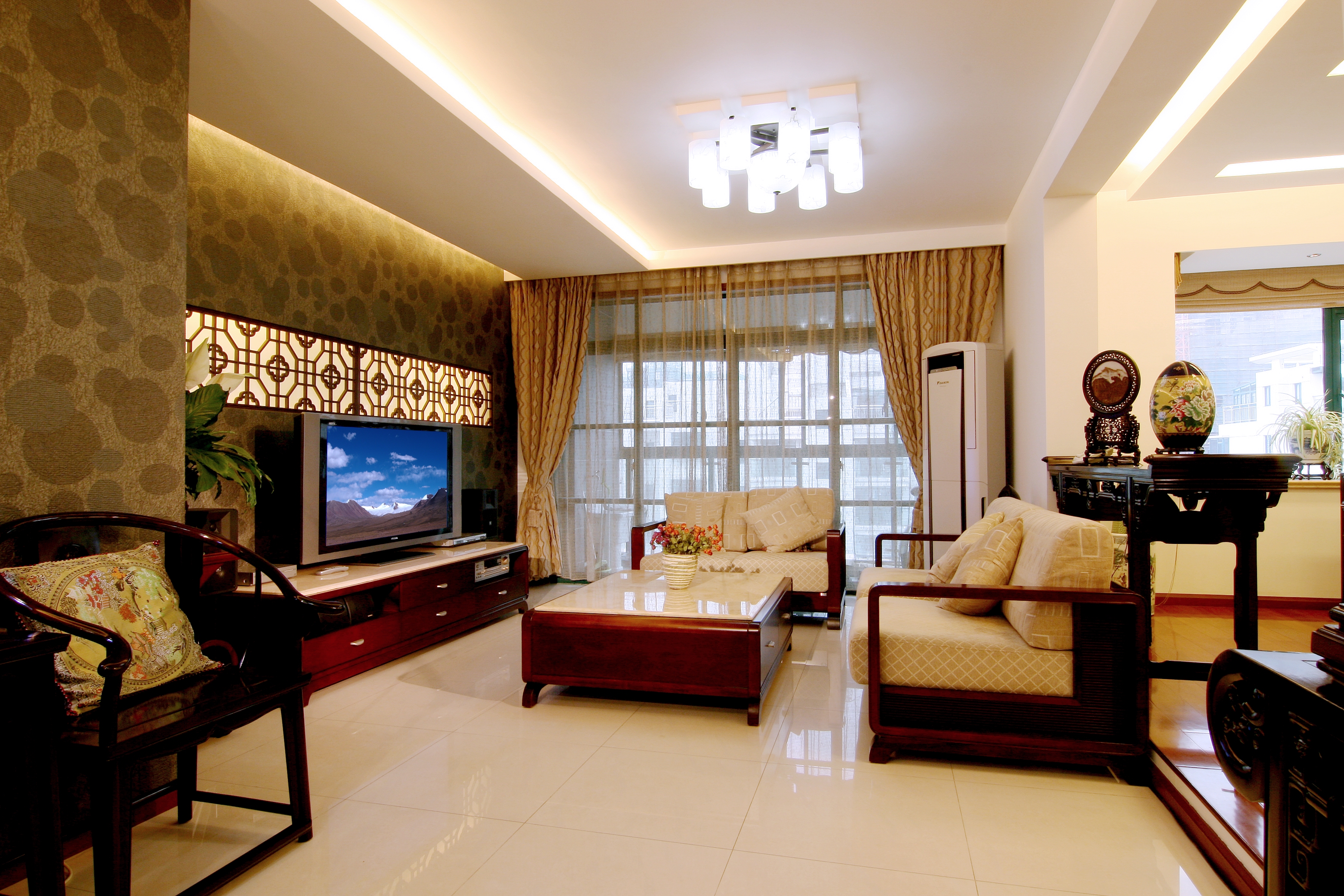 整個家居以現代簡約風為基調,淺色的用具,白色的地板,建議窗簾也搭配淺色系的,墻壁上掛上一些壁畫,讓整個客廳的空間變得清爽怡人,同時由于墻壁是白色系,為了避免客廳過分的單調,可擺上一些綠色盆栽。